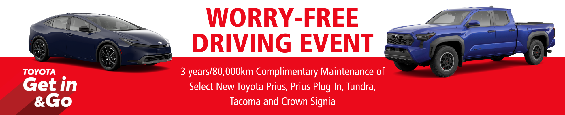 *Included with each of the 6 scheduled service intervals in the 3-year / 80,000 km plan for eligible in-stock 2025 Prius & Tacoma models. Additional diagnostics/repairs are separate.*